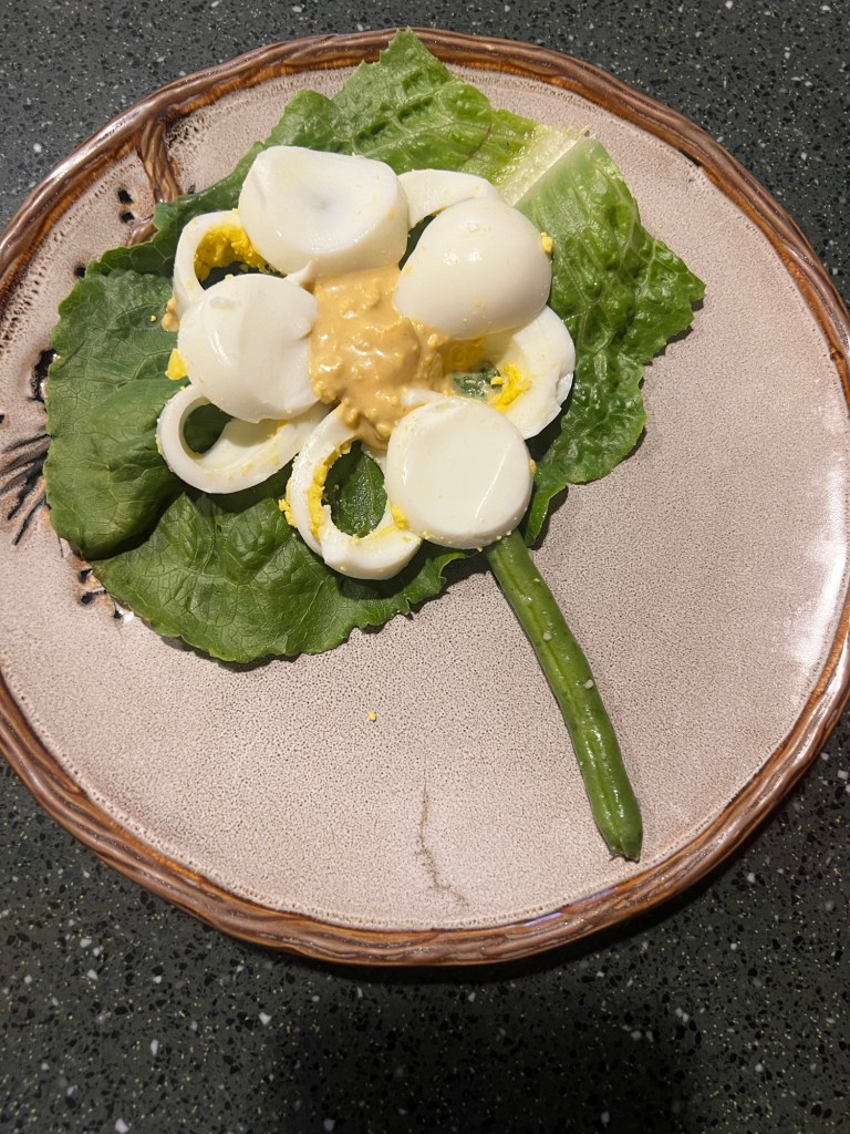 The lack of seasoning was underwhelming so I dressed it up with some deviled egg additions. This little thing wasn’t the easiest to eat but it did make a nice presentation.